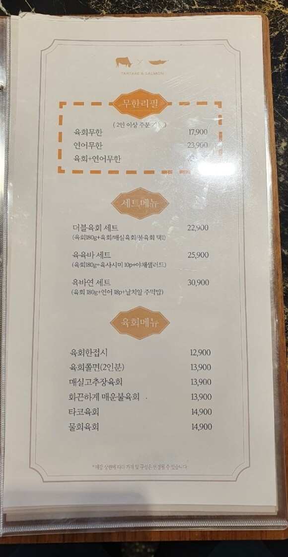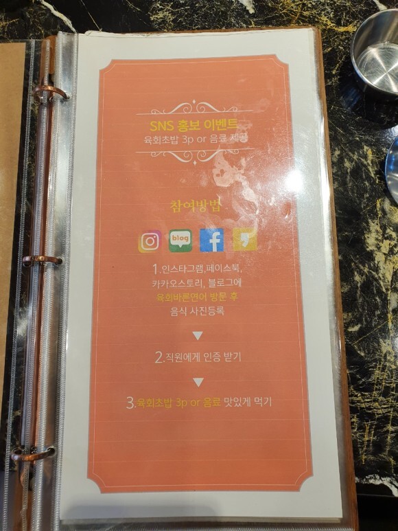 육회바른언어 메뉴판