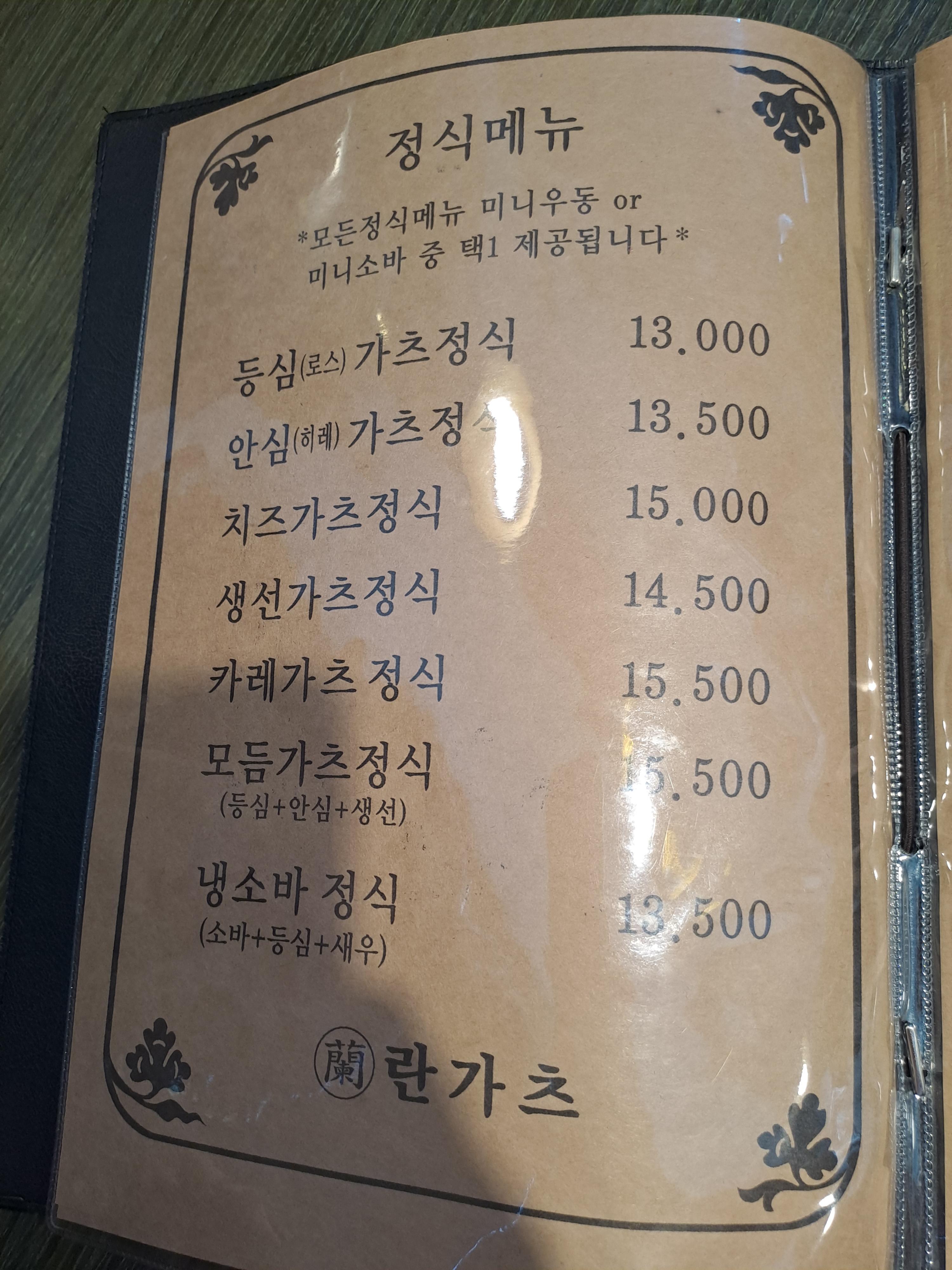 우선 아래는 식당 메뉴입니다.