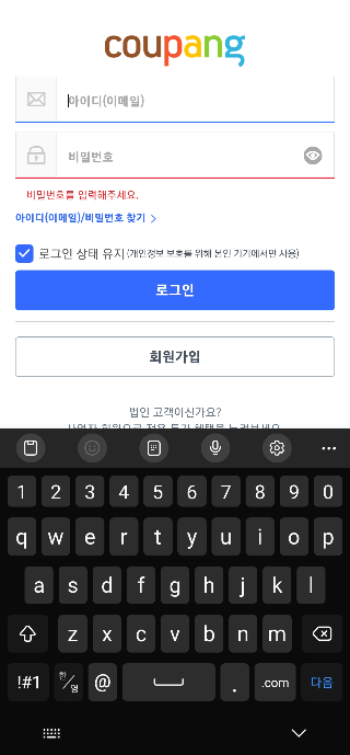 저는 쿠팡 아이디가 있어서, 바로 로그인을 했어요.