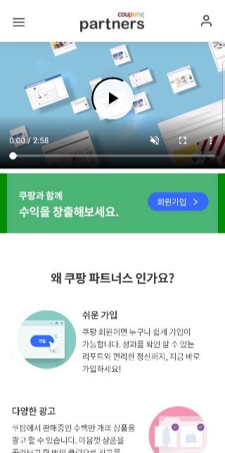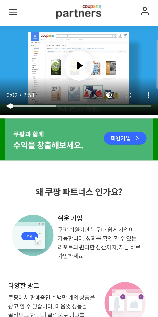 쿠팡 파트너스로 수익을 올릴 수 있다는 얘기를 듣고... 저도 가입을 하게 되었습니다.