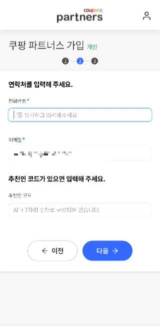 이제 쿠팡 파트너스에 가입을 할 차례입니다.
