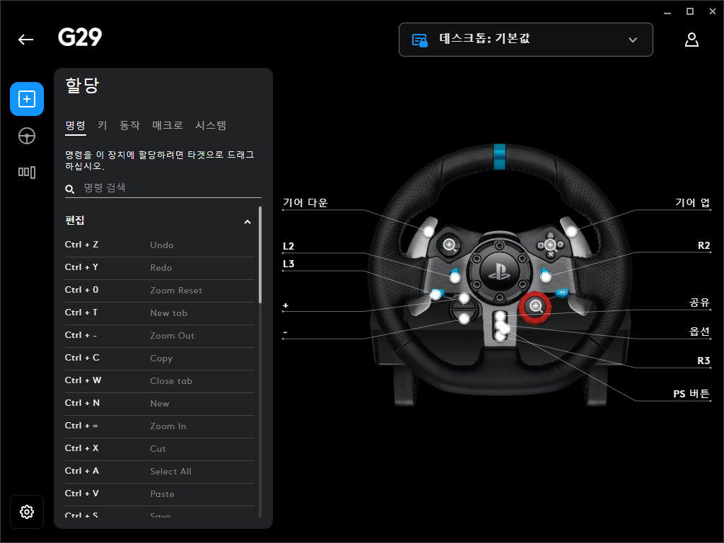 G29에 이는 키, 버튼에 키를 세팅하여 사용할 수도 있습니다.