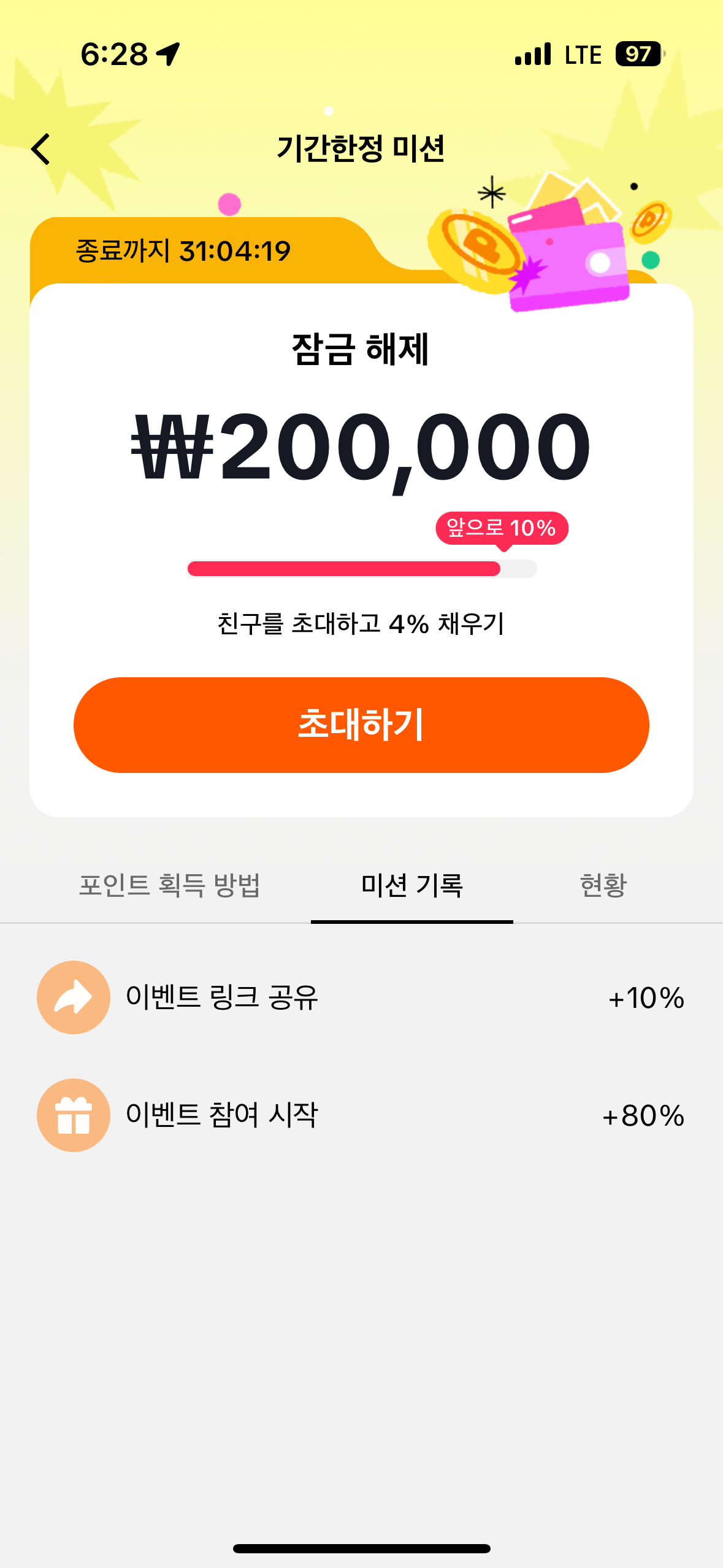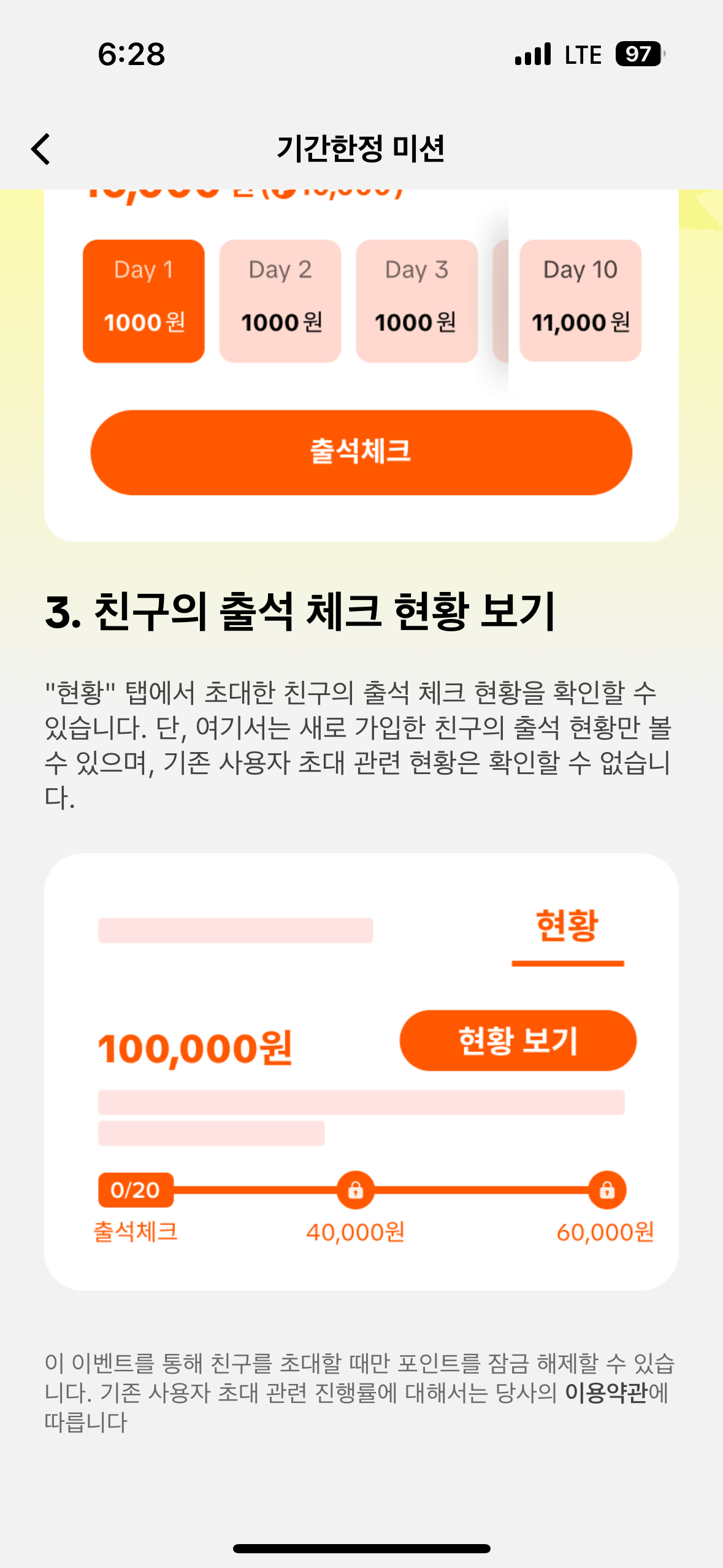 친구를 초대하시고 친구분이 10일만 출첵하시면,