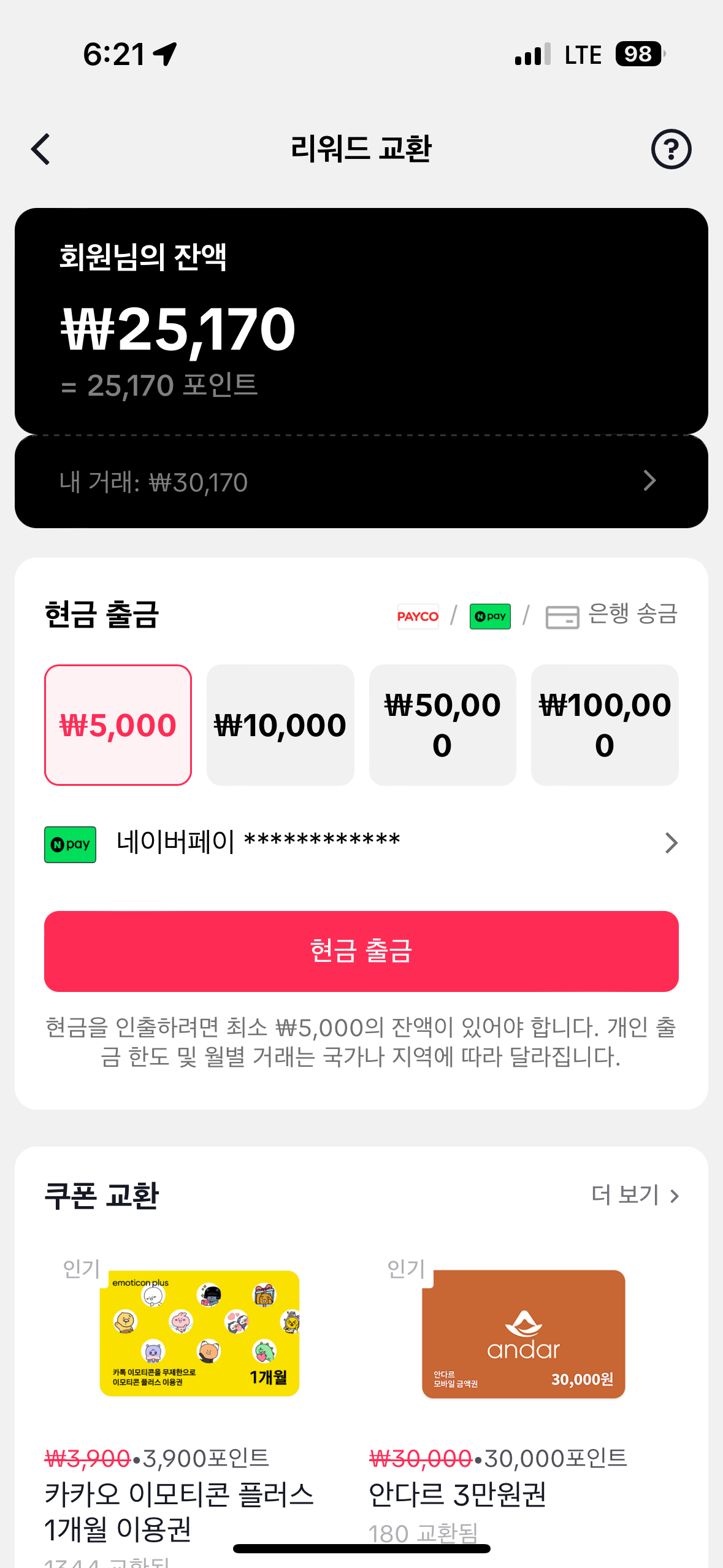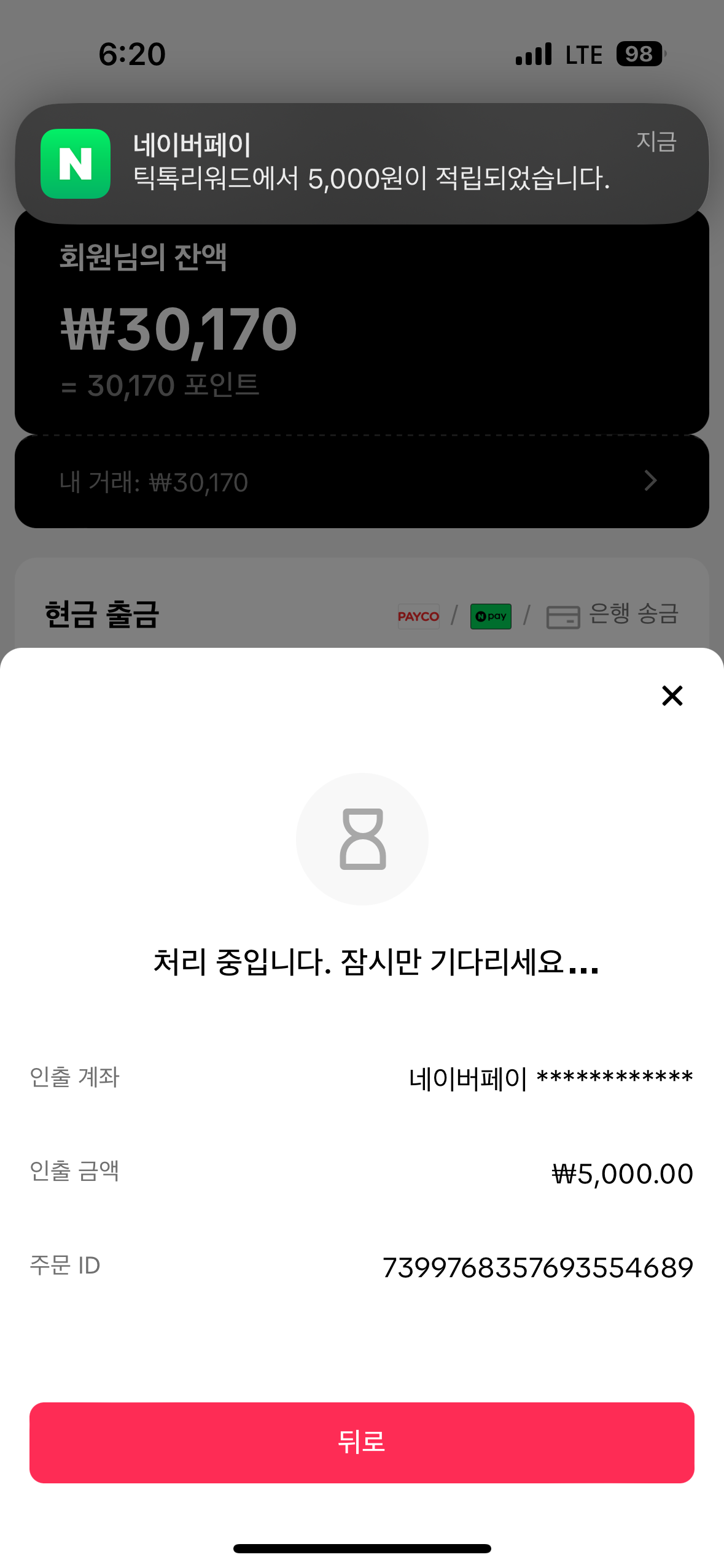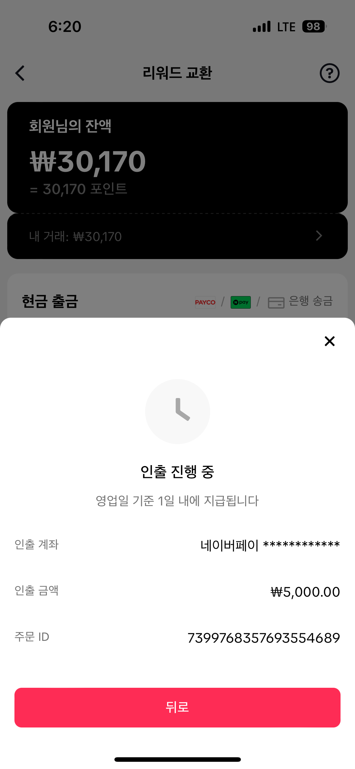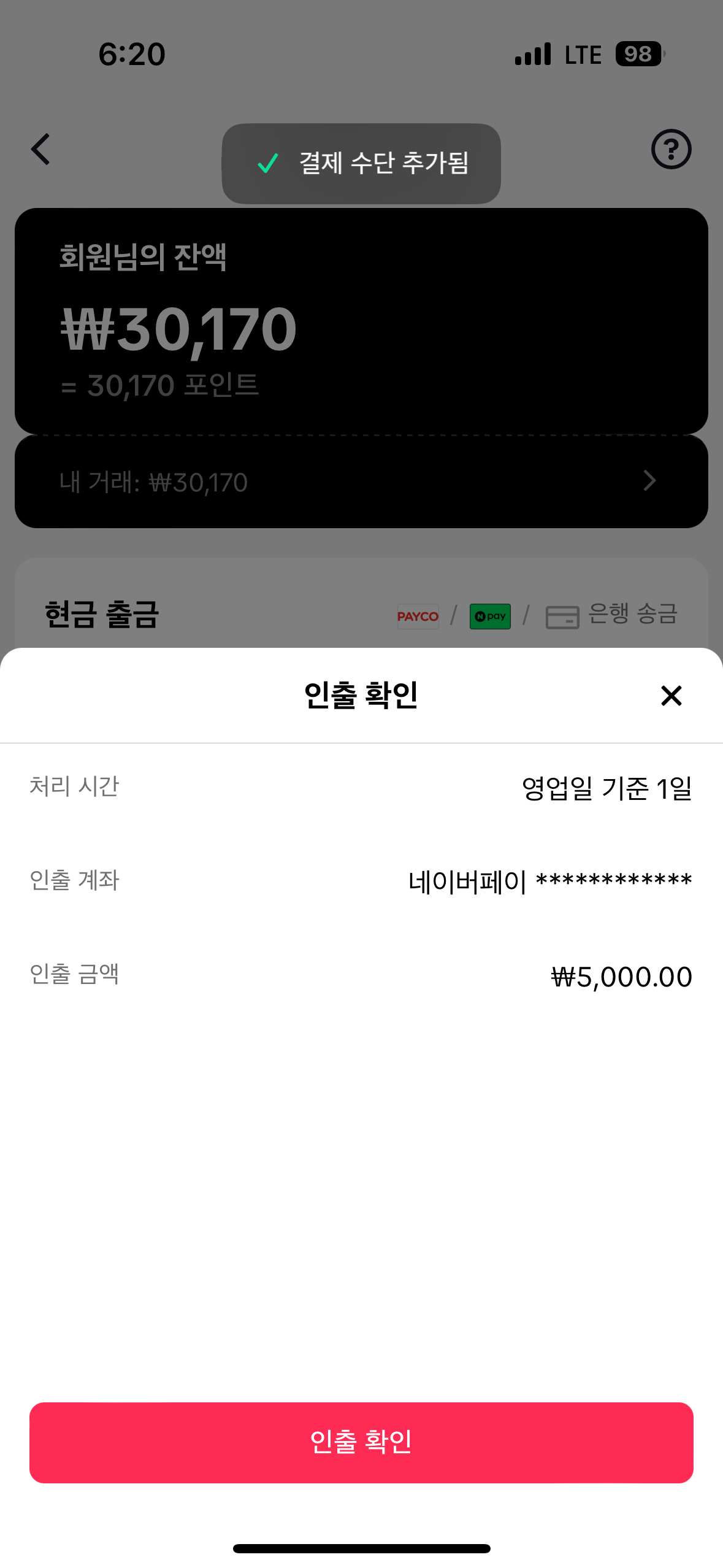 저는 네이버로 인출했을 때 1초 후에 바로 들어왔습니다.