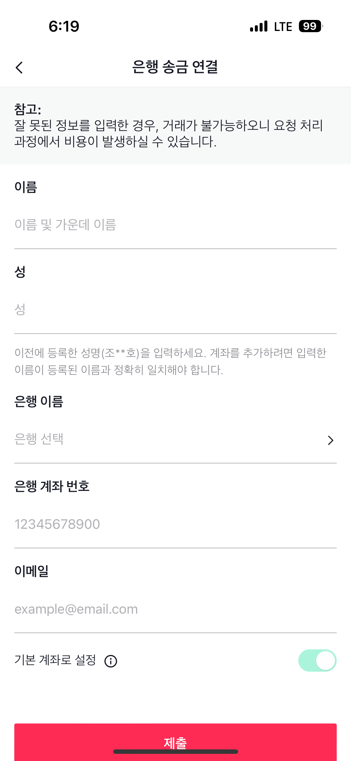 은행 송금 연결시 아래외 같은 회면이 나옵니다.